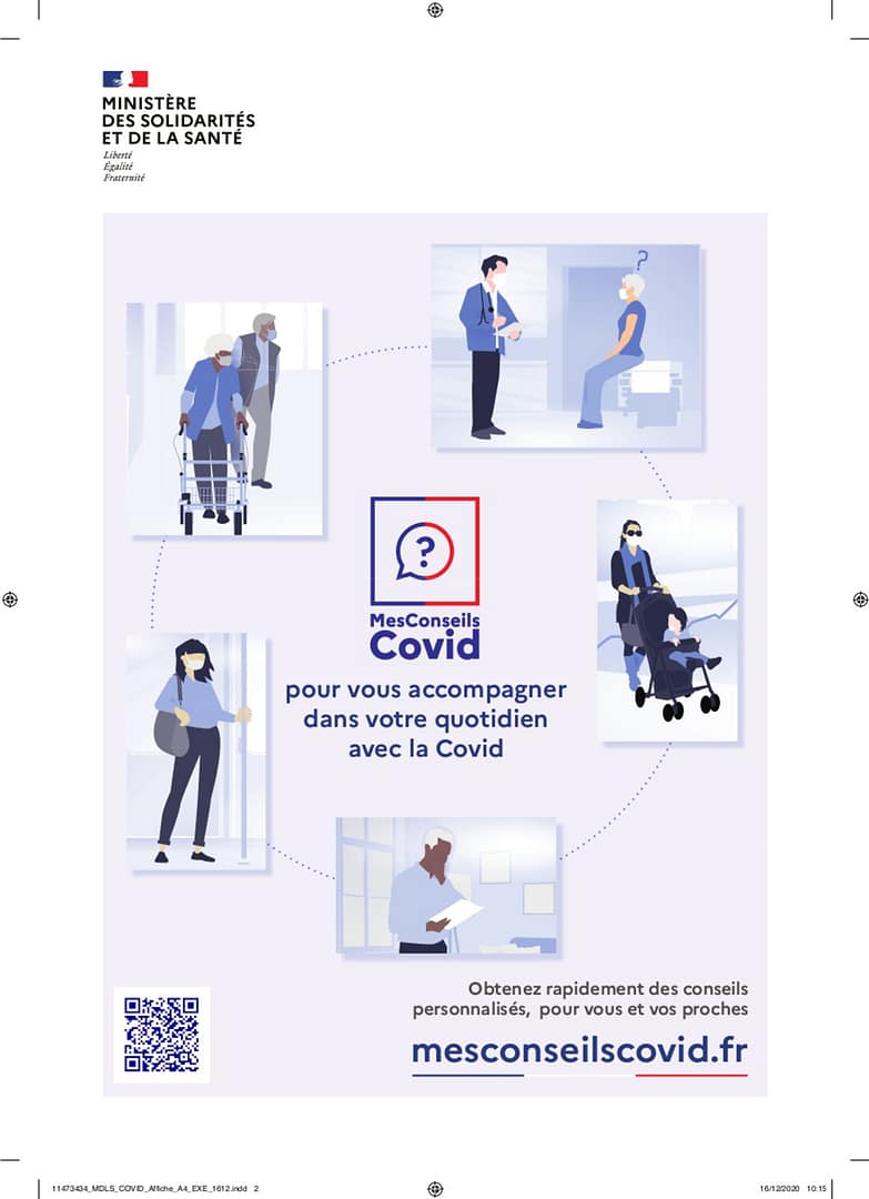 Le ministère des Solidarités et de la Santé a conçu le site www.mesconseilscovid.sante.gouv.fr dans le cadre de sa stratégie “Tester, Alerter, Protéger” de lutte contre l’épidémie de Covid-19.